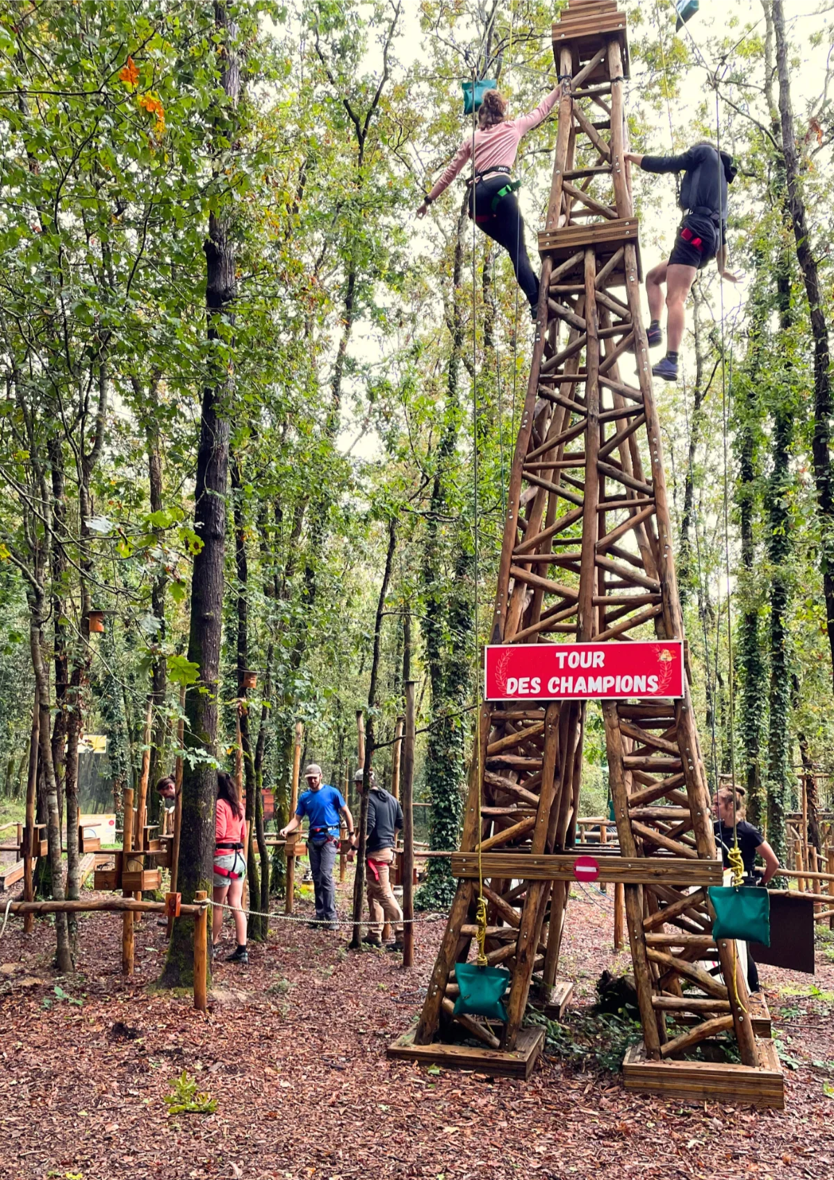 - La tour des champions : Escaladez la tour en bois au cœur de la forêt. Physique, collective, exigeante : l’équipe pousse chaque joueur à se dépasser.