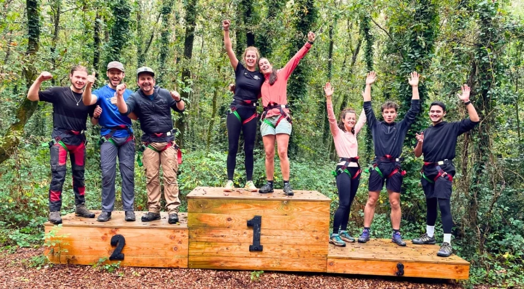 Le Squad Game est pensé pour renforcer la cohésion d’équipe : chaque épreuve impose la communication, la stratégie collective et la solidarité. C’est une alternative originale aux séminaires classiques, dans la forêt en Vendée du Grand Défi.